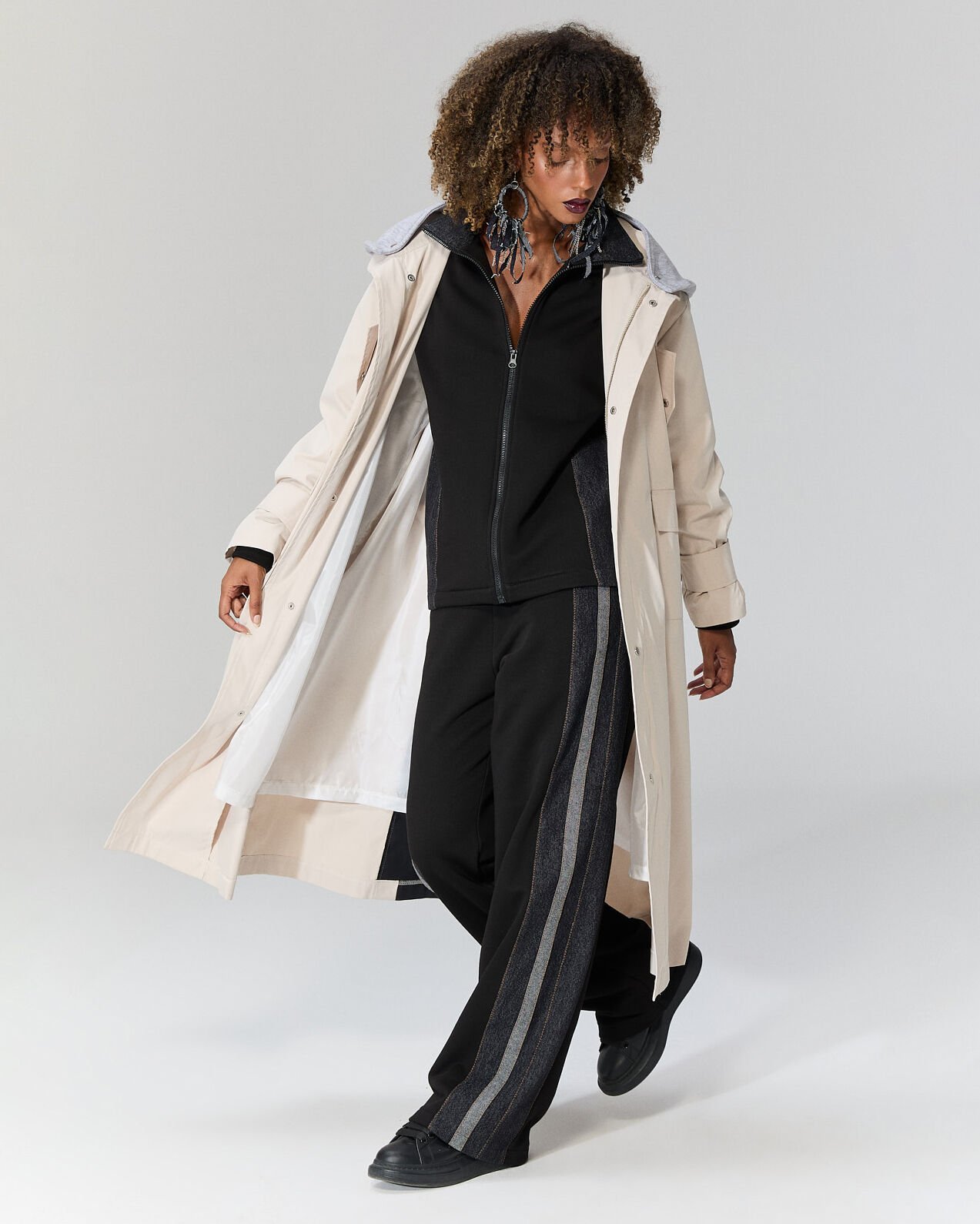 Bej tasarım trençkot, şıklığı ve fonksiyonelliği bir arada sunar. Hafif ve kaliteli kumaşı ile her mevsim rahatlıkla kullanılabilir. Modern kesimi sayesinde hem iş hem de günlük kombinlere kolayca uyum sağlar. Suya dayanıklı yapısı ve zarif düğmeleriyle dikkat çeker.