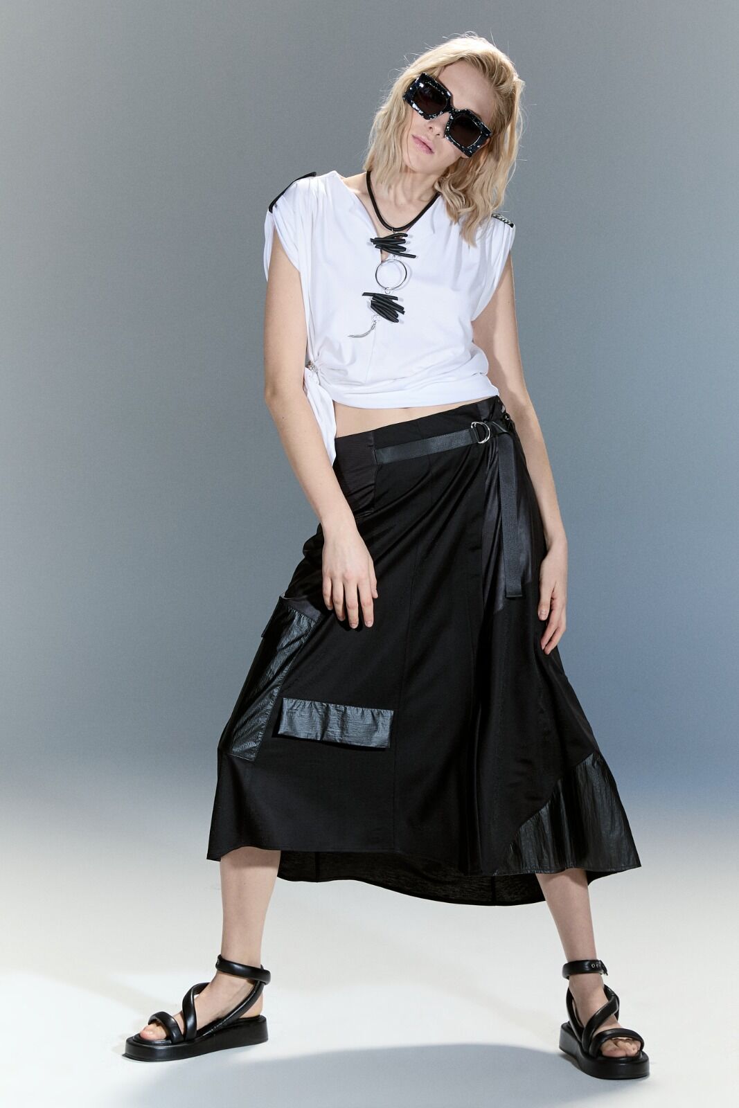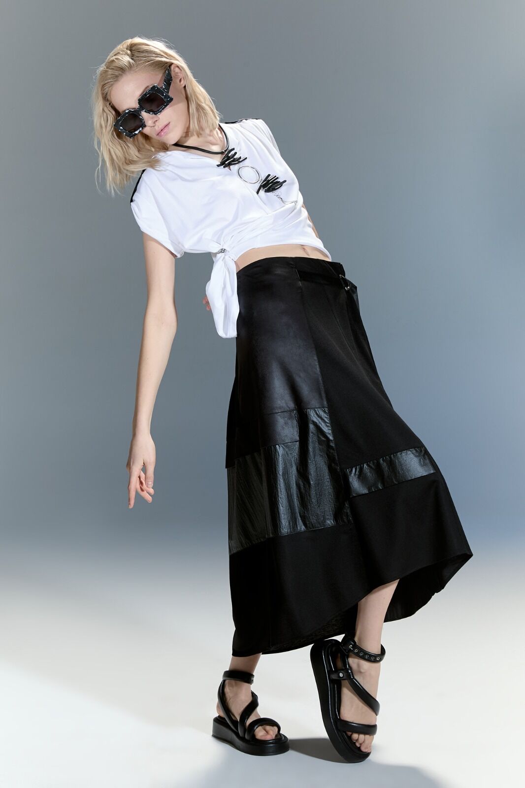 Bu deri detaylı spor kesim etek, şıklığı ve rahatlığı bir araya getiriyor. Yüksek kaliteli deri detayları ile modern ve dinamik bir görünüm sunuyor. Hafif dokusu ve esnek yapısıyla gün boyu konfor sağlarken, şık tasarımıyla her durumda tarzınızı tamamlıyor. Hem günlük kullanıma hem de özel günlerde tercih edebileceğiniz bir parça.