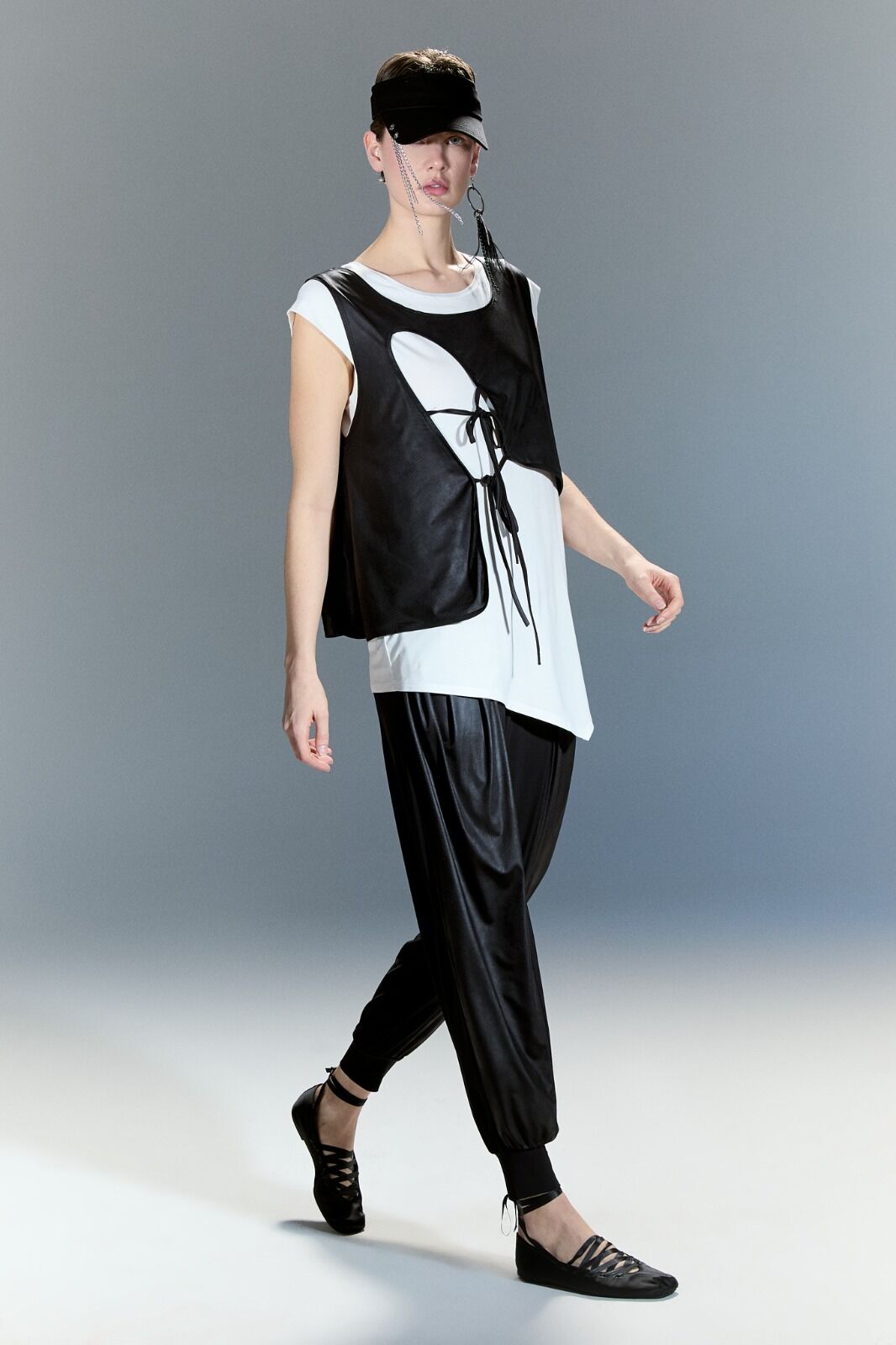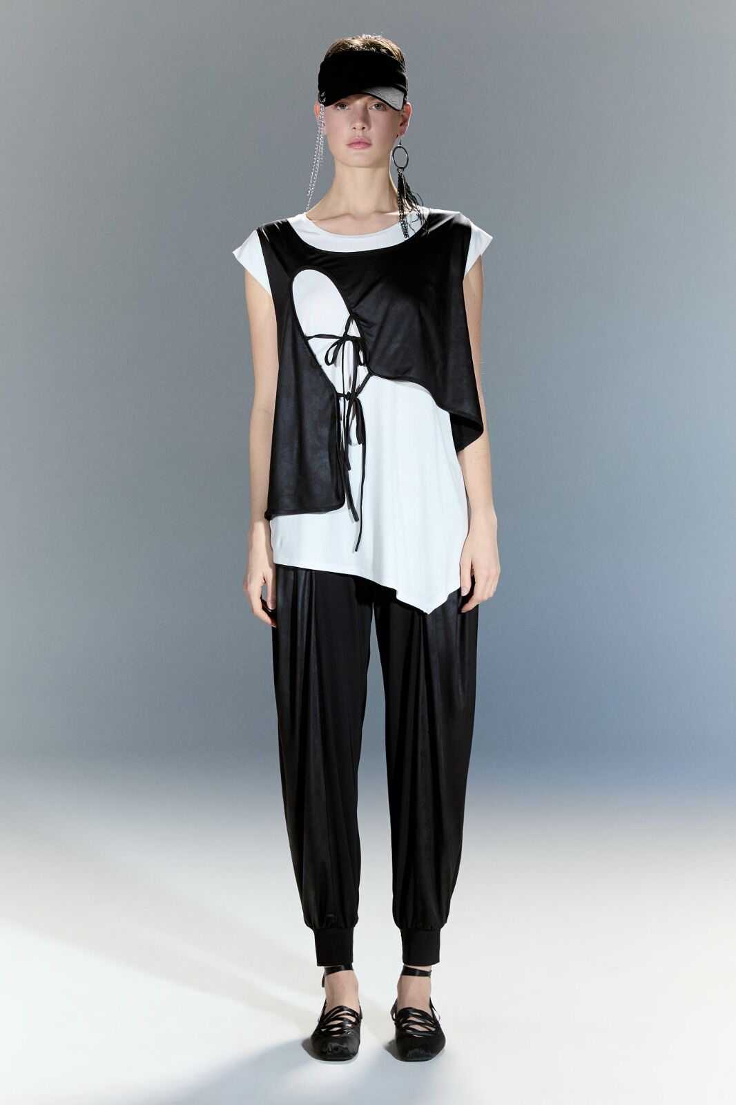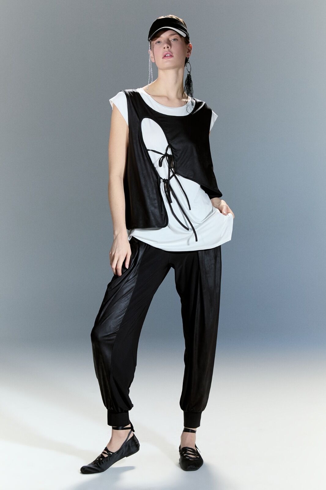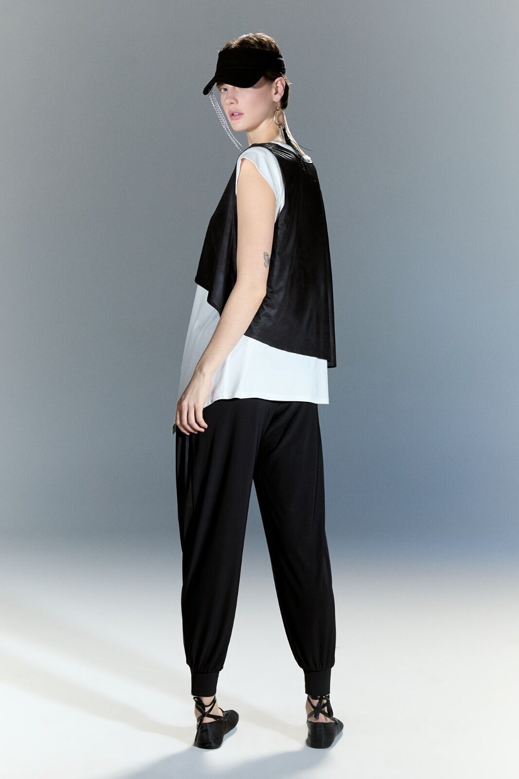 Bu deri yelekli bluz, şık ve modern bir görünüm sunar. Deri detayları, bluzu hem feminen hem de sert bir tarza dönüştürür. Bu bluz, günlük giyim için mükemmel bir seçenektir ve herhangi bir kıyafete havalı bir dokunuş katar. Trendi takip edenler için idealdir.