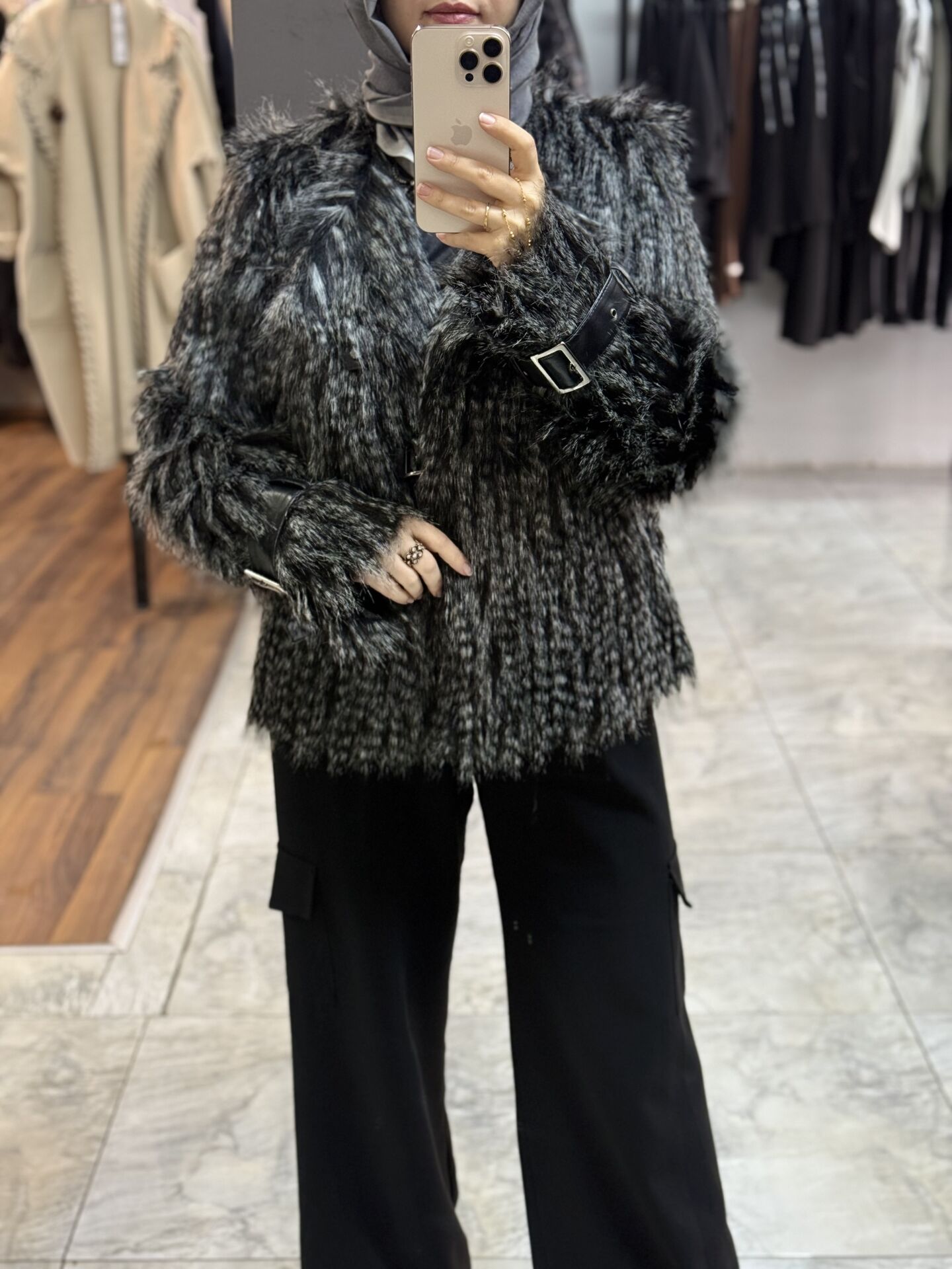 Şıklığınızdan ödün vermeden soğuk havalarda sizi sıcak tutacak kürk kaban, zarif tasarımı ve kaliteli malzemesiyle gardırobunuzun vazgeçilmezi olacak. Hem casual hem de özel davetlerde kullanıma uygun, dayanıklı ve konforlu bu kabanla kış günlerini keyfe dönüştürün.