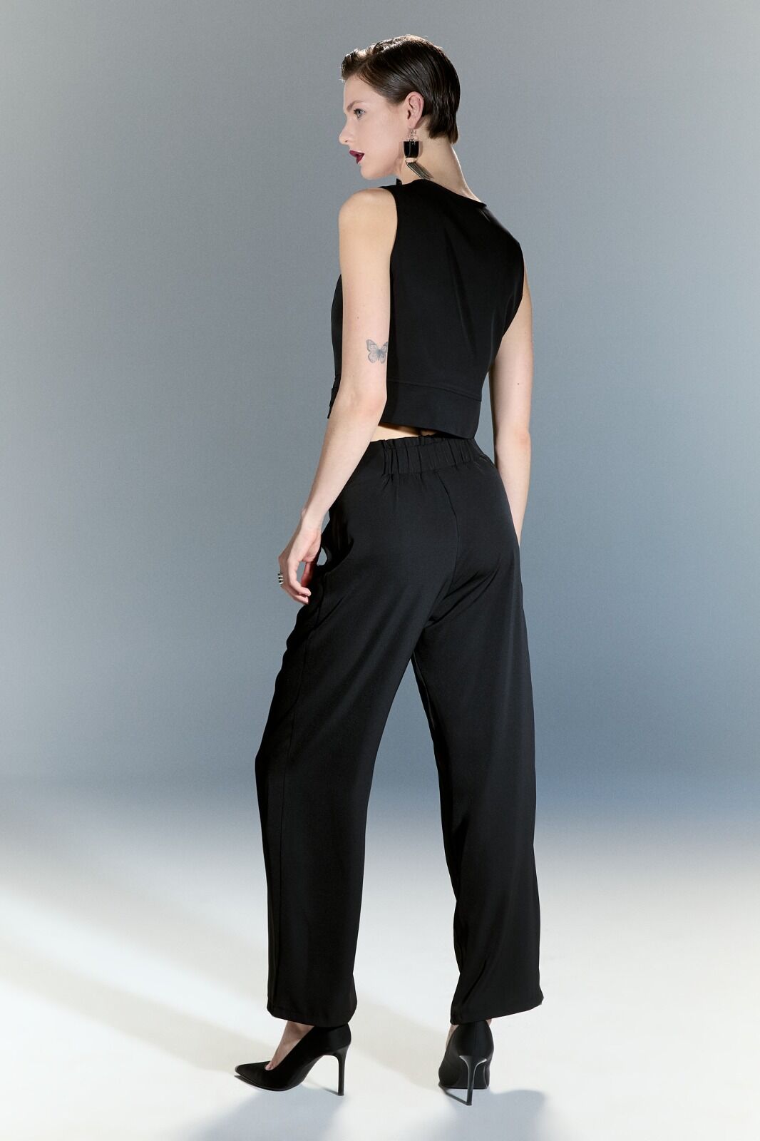 Bu siyah tasarım yelek, şıklığı ve rahatlığı bir arada sunar. Klasik ve zarif tasarımı ile her türlü kombinasyonla uyum sağlayabilir. Çeşitli beden seçenekleri ile herkesin tarzına hitap eder. Yüksek kaliteli malzemelerden üretilmiş olup uzun ömürlü kullanım vaat eder. Gardırobunuzun vazgeçilmezi olmaya aday!