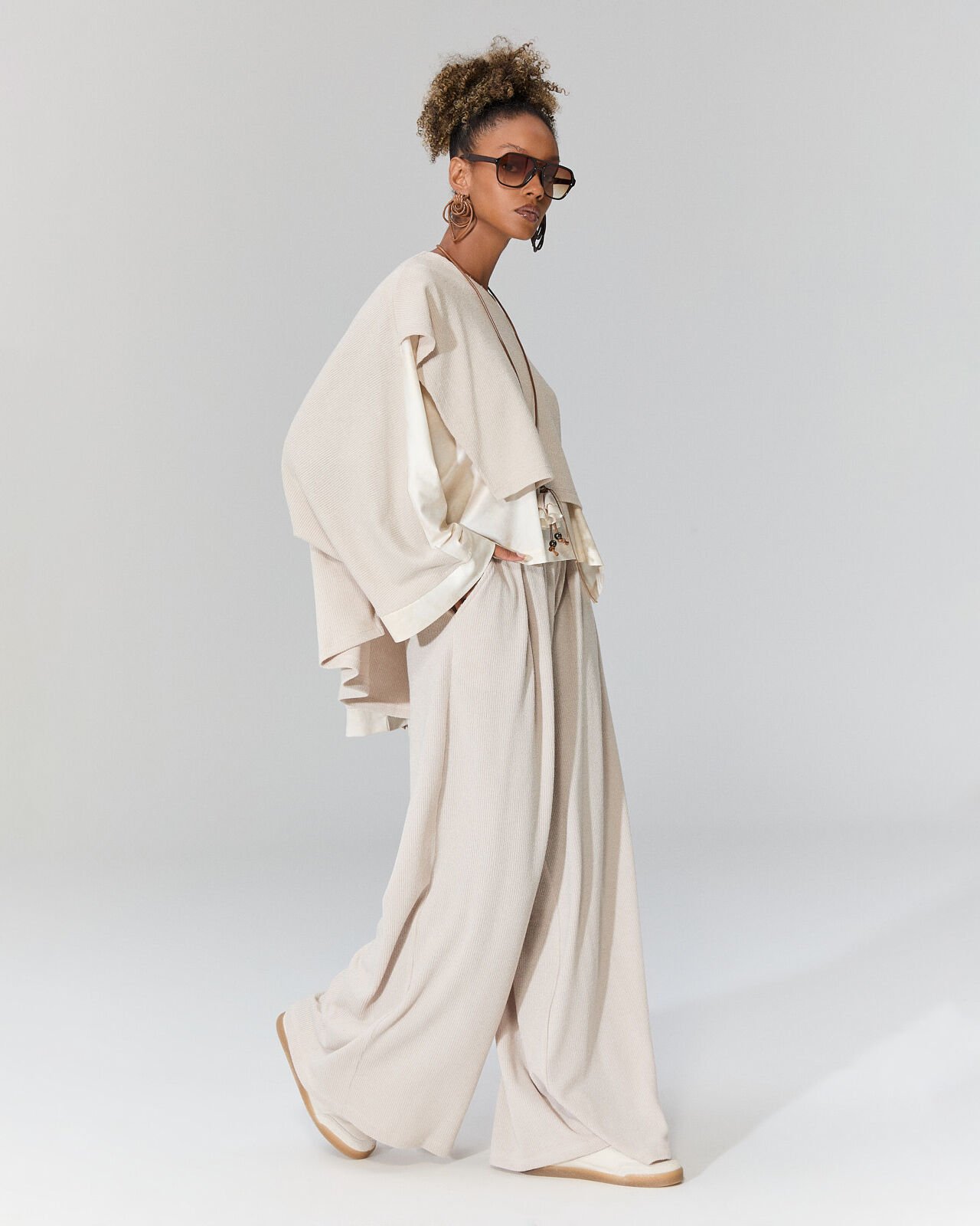 Şık ve rahat triko pantolon, her mevsime uyum sağlayan yumuşak dokusuyla gün boyu konfor sunar. Elastik yapısı ve modern kesimi, hareket özgürlüğünüzü artırırken tarzınızı tamamlar. Hem evde hem dışarda rahatlıkla kullanabileceğiniz çok yönlü bir gardırop parçasıdır.