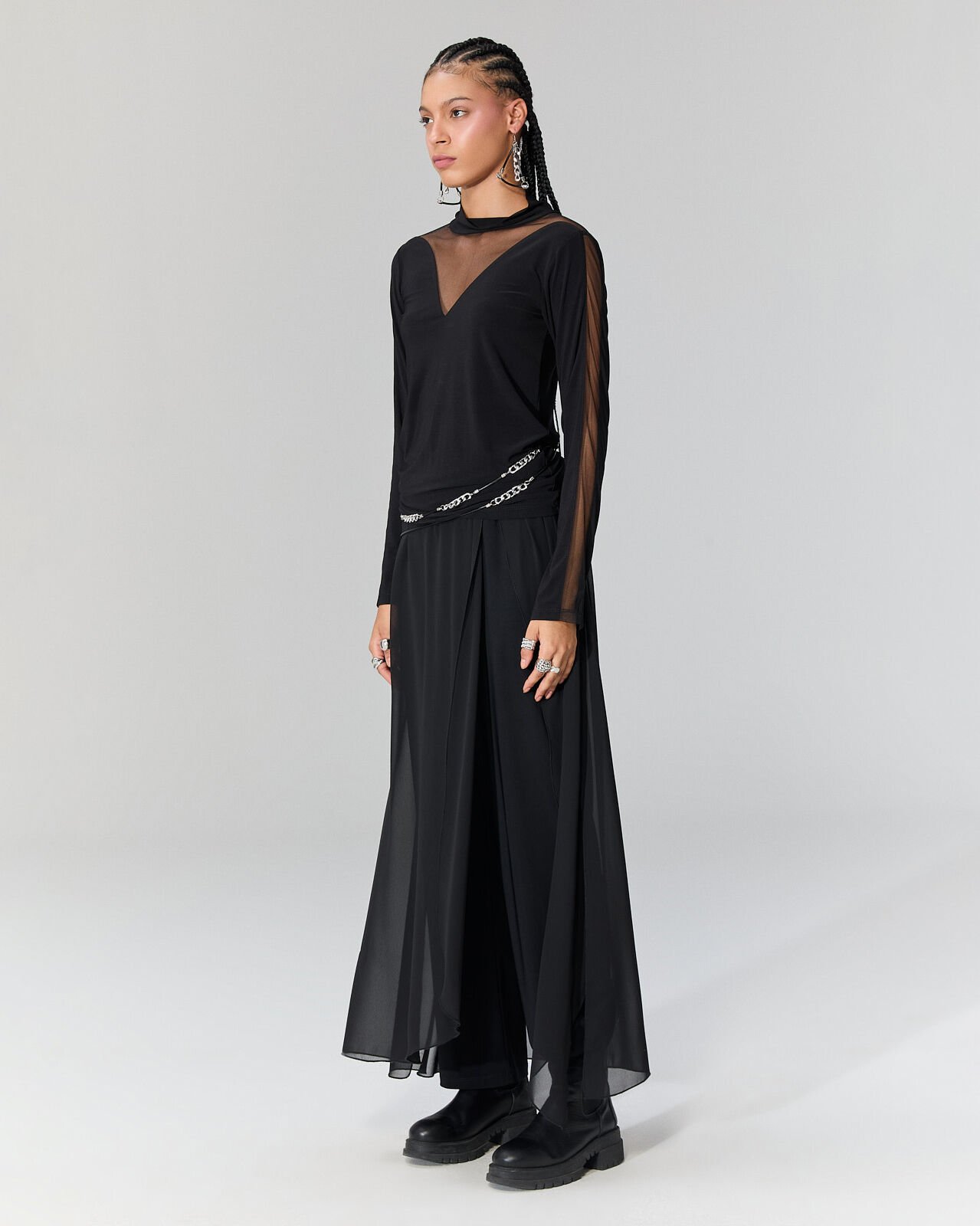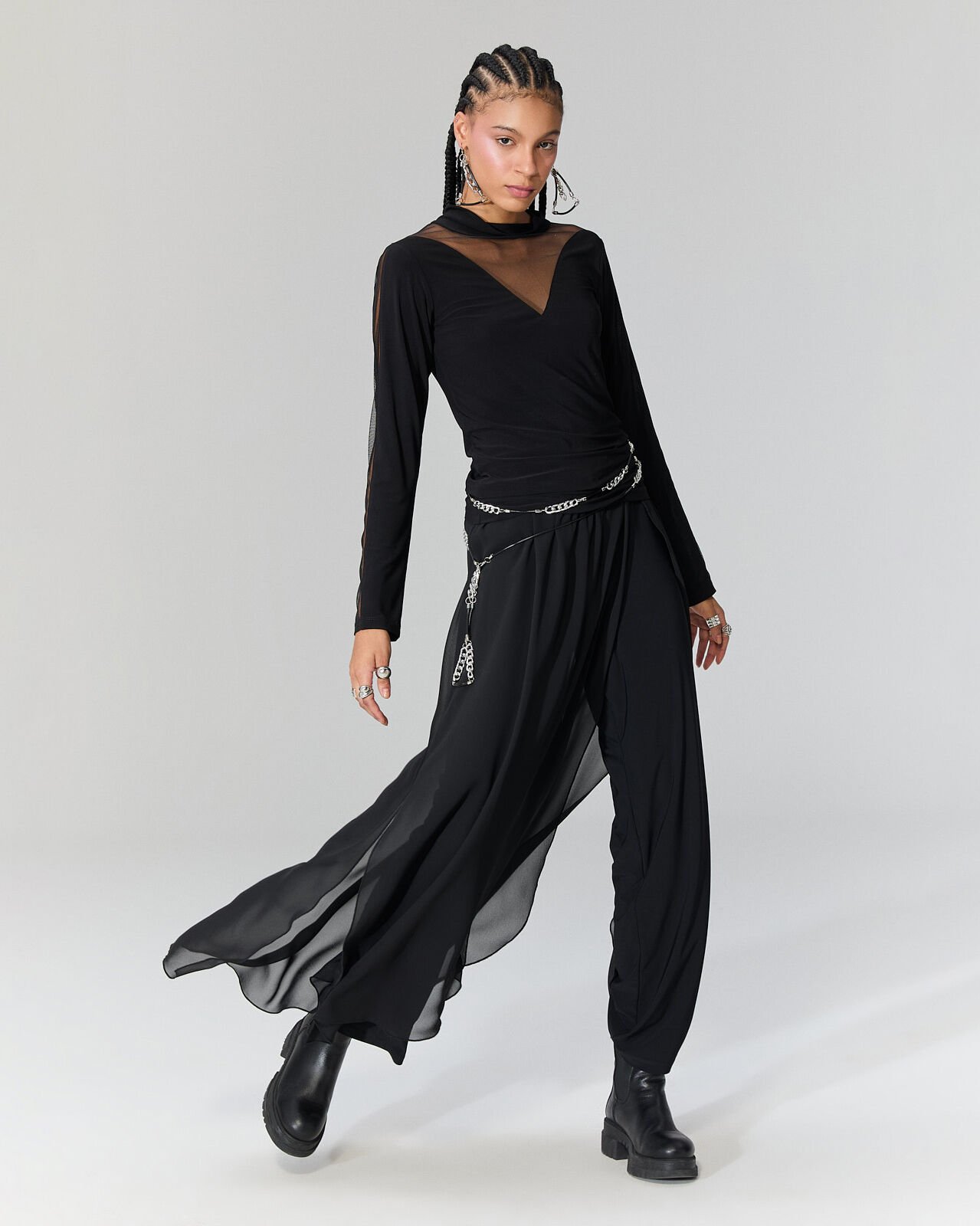 Bu şık pantolon, tül detaylarıyla dikkat çekiyor. Rahat kesimi ve şık tasarımı ile her kombinde kullanabileceğiniz bir parça. İster günlük kullanım, ister özel bir davet için tercih edebilirsiniz. Şıklığı ve rahatlığı bir arada arayanlar için ideal bir seçim.
